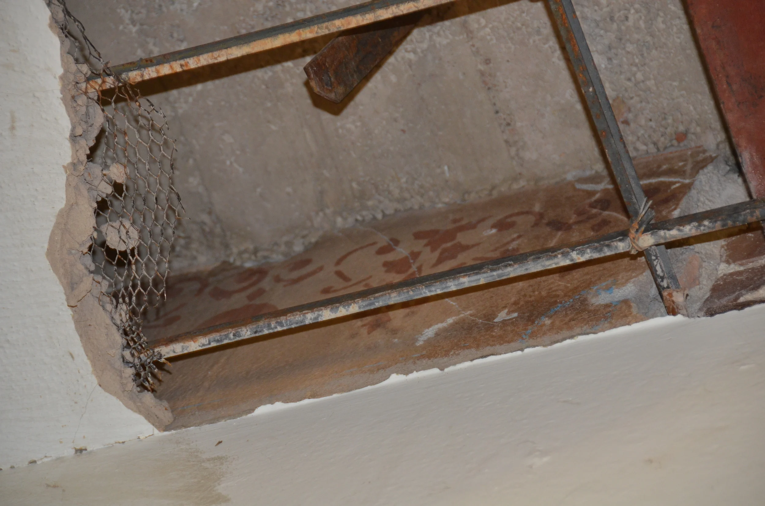 In these photos, workers have carefully removed this section of wood paneling so we could see what is underneath. The majority of historical documents for the Capitol do not show what is behind the walls, ceilings and floors. This particular removal shows what is behind the woodwork and helps us obtain a better understanding of how to bring in electrical systems during the renovation without damaging wood.