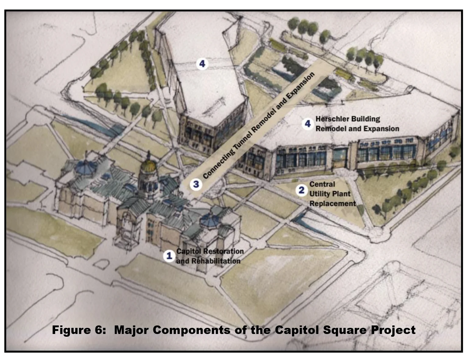 Connecting Tunnel Remodel and Expansion (Capitol Extension): The tunnel that connects the Capitol to the Herschler Building will be expanded underneath the Herschler Building extending almost all the way to 26th Street to accommodate public space needs that cannot be met in the Capitol. To manage the budget, two additional meeting rooms, an auditorium, and a student learning center will be built, but may not be finished, depending on contingency funds available at the end of the project. These amenities were added in the last year to plan for future needs. The budget is approximately $19 million.