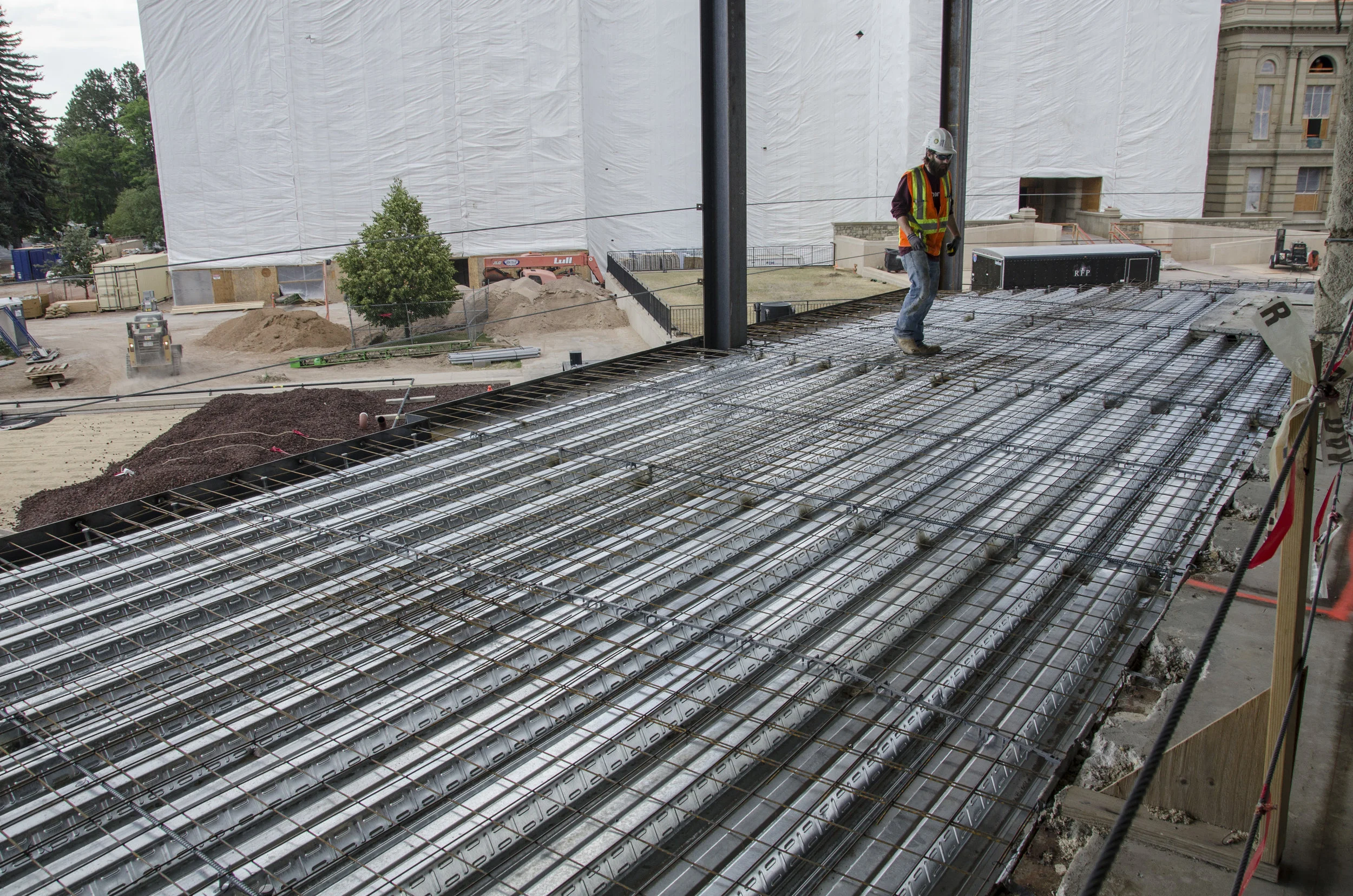 JE Dunn Construction Company will start work on the Wyoming Capitol Square Project at 5 a.m. on Friday, July 14 and Saturday, July 15 to handle two large concrete pours to install the concrete slabs for the southward extension of the east wing of the Herschler Building. These slabs on floors 2, 3, and 4 will add nearly 20,000 square feet of usable space to the Herschler Building.