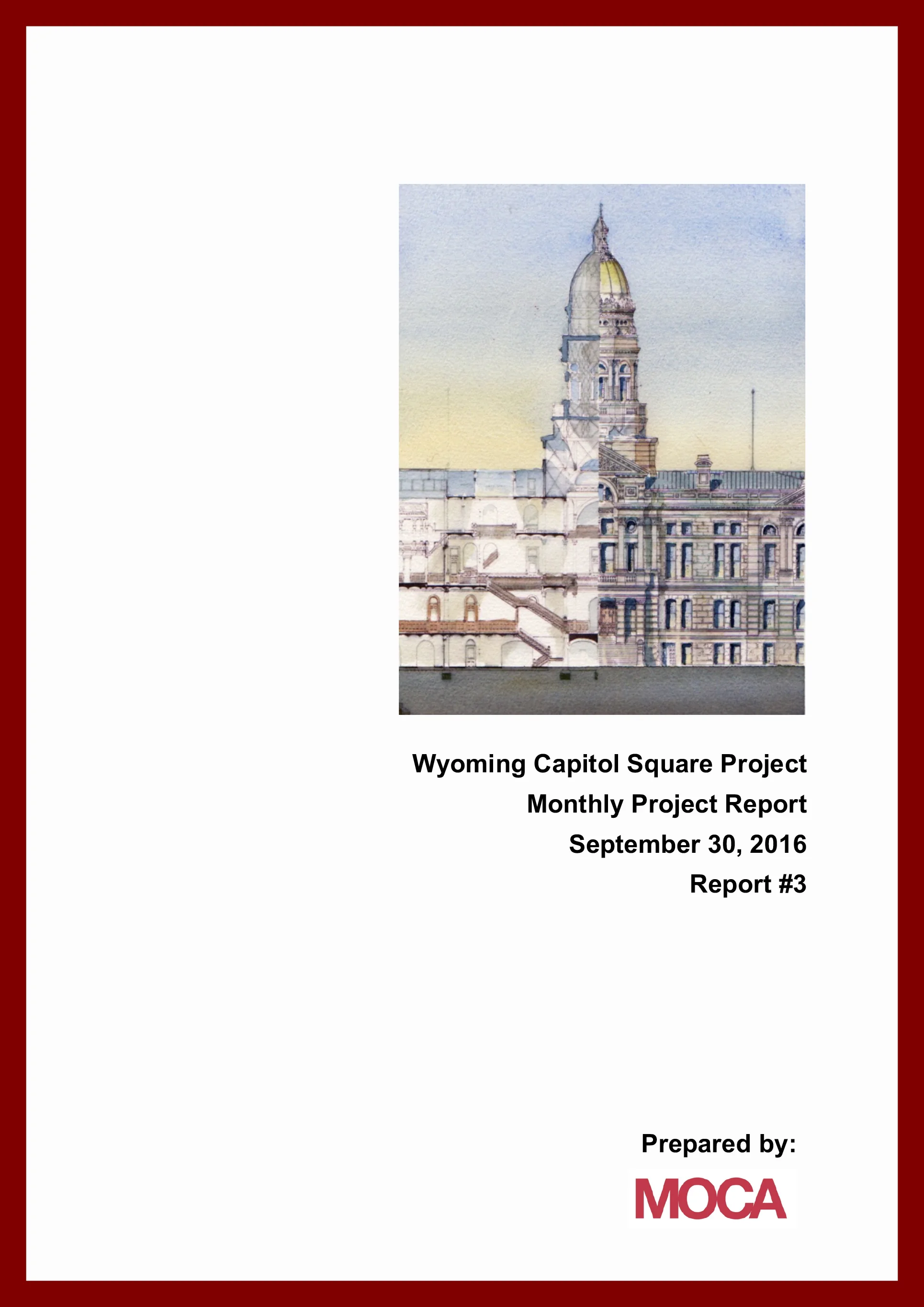 Wyoming Capitol Square Project Monthly Project Report September 30, 2016 Report #3