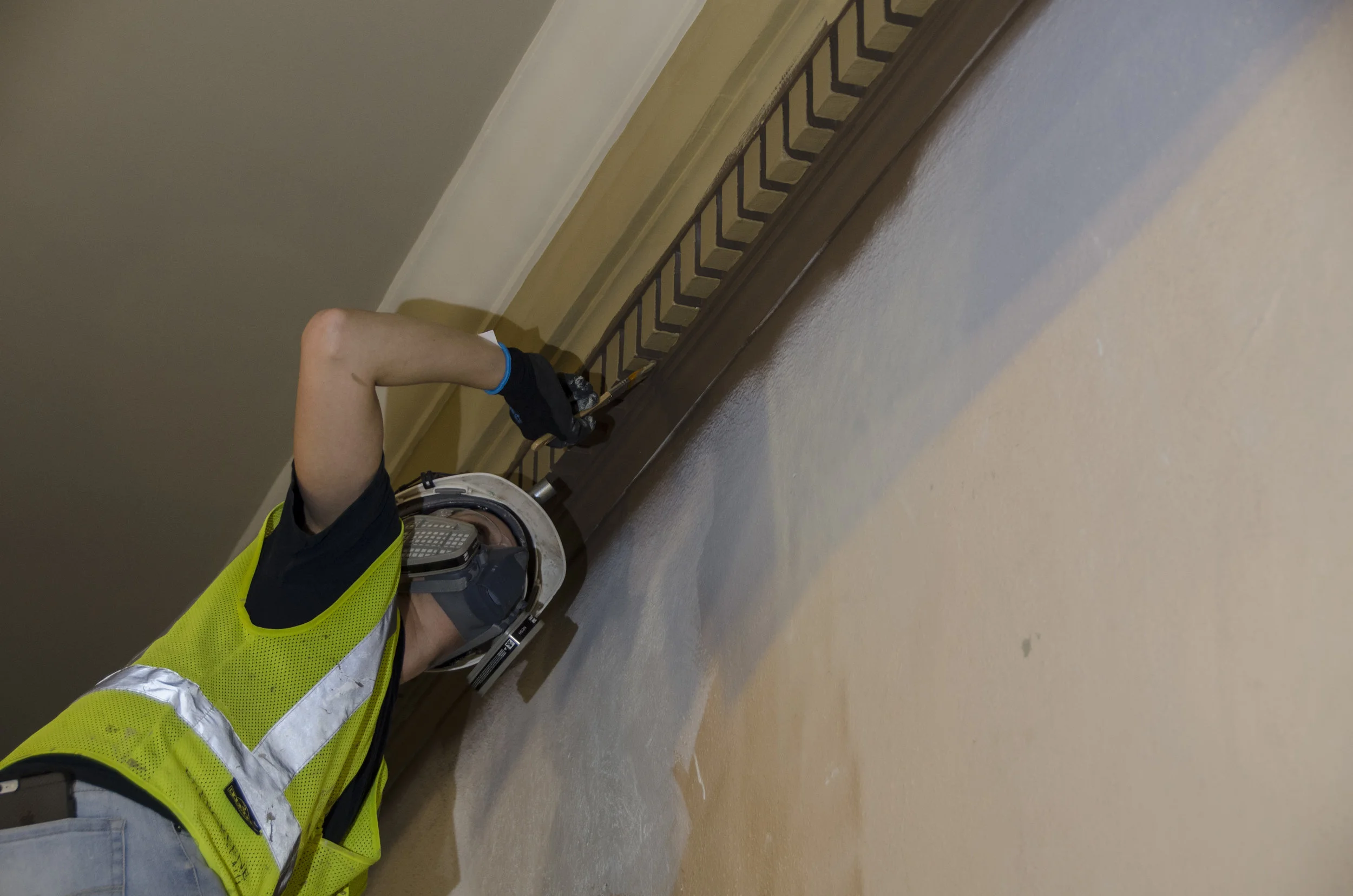 Based on historic paint studies, painters are restoring the original color palette in the Capitol. Most recently, painters worked on restoring the paint colors in the House gallery.
